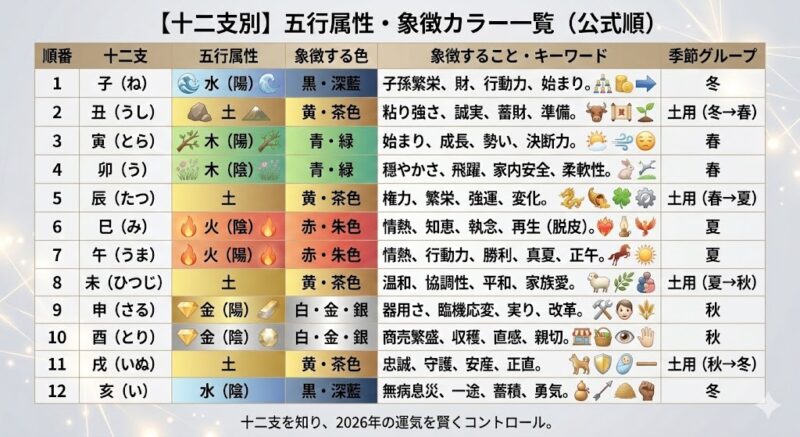【十二支別】五行属性・象徴カラー一覧