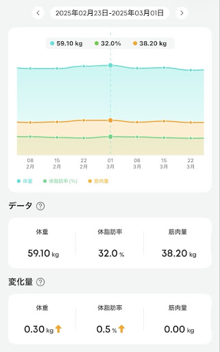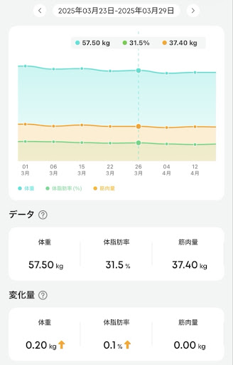 体脂肪率: 31.4% → 31.5%(+0.1%)