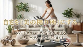 せっかくのフィットネスバイク、ただ漕ぐだけではもったいない?ジム通いから自宅ジムへ切り替えた私が、自宅を「最高の美の拠点」に変える方法を伝授。バイク×筋トレの黄金比と、STEADYやFITBOXなど大人の自己投資にふさわしい器具選びをご紹介します。