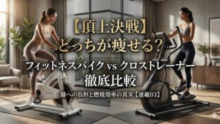 フィットネスバイクとクロストレーナー、どっちが痩せる?消費カロリー、静音性、膝への負担を徹底比較。「手軽さならバイク」「全身痩せならクロストレーナー」。あなたのライフスタイルに合う器具が必ず分かります。【連載③】